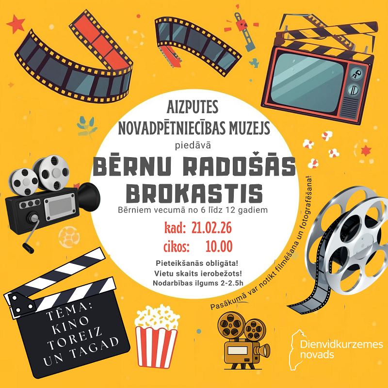 Izsludinām pieteikšanos uz nodarbību "Radošās bērnu brokastis " muzejā. Nodarbības tēma- „KINO TOREIZ UN TAGAD”.