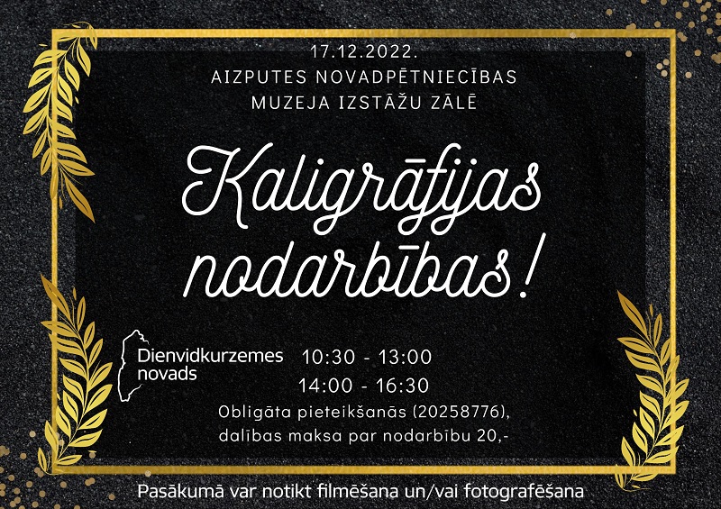 Izsludinām pieteikšanos dalībai KALIGRĀFIJAS NODARBĪBĀS. Dalībnieku skaits nodarbībās ierobežots, tāpēc neprāto ilgi un piesakies tūlīt!